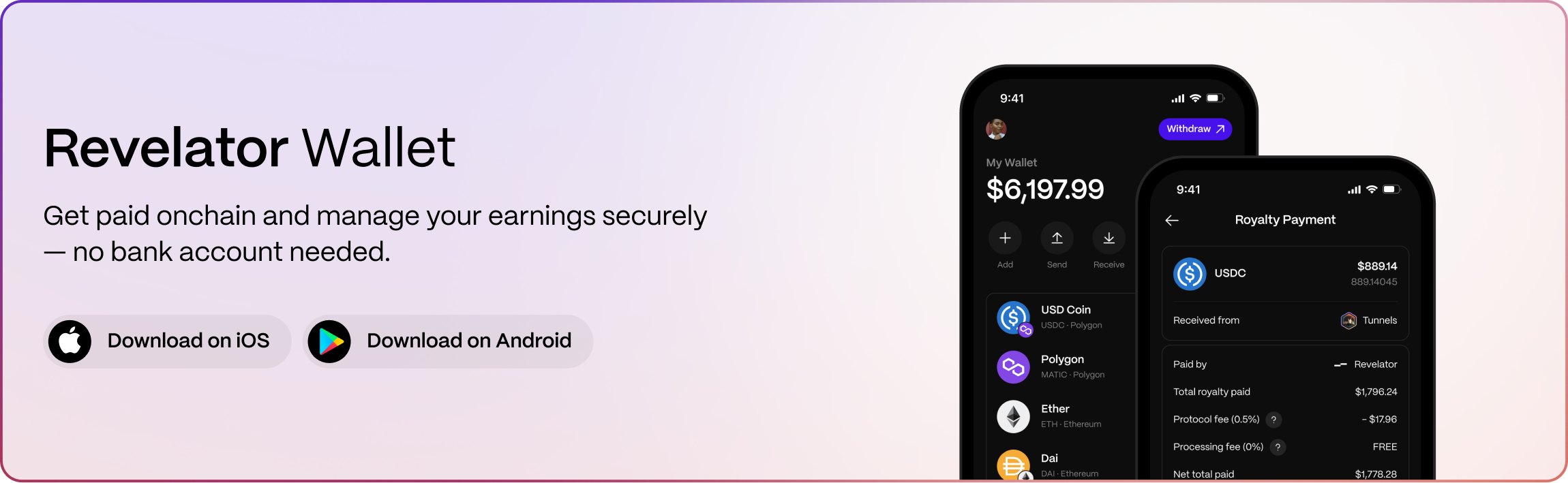 **iOS →** [**Download**](https://apps.apple.com/app/revelator-wallet-unlock-web3/id1484642420?platform=iphone)         **Android →** [**Download**](https://play.google.com/store/apps/details?id=com.revelator.originalworks\&pli=1)