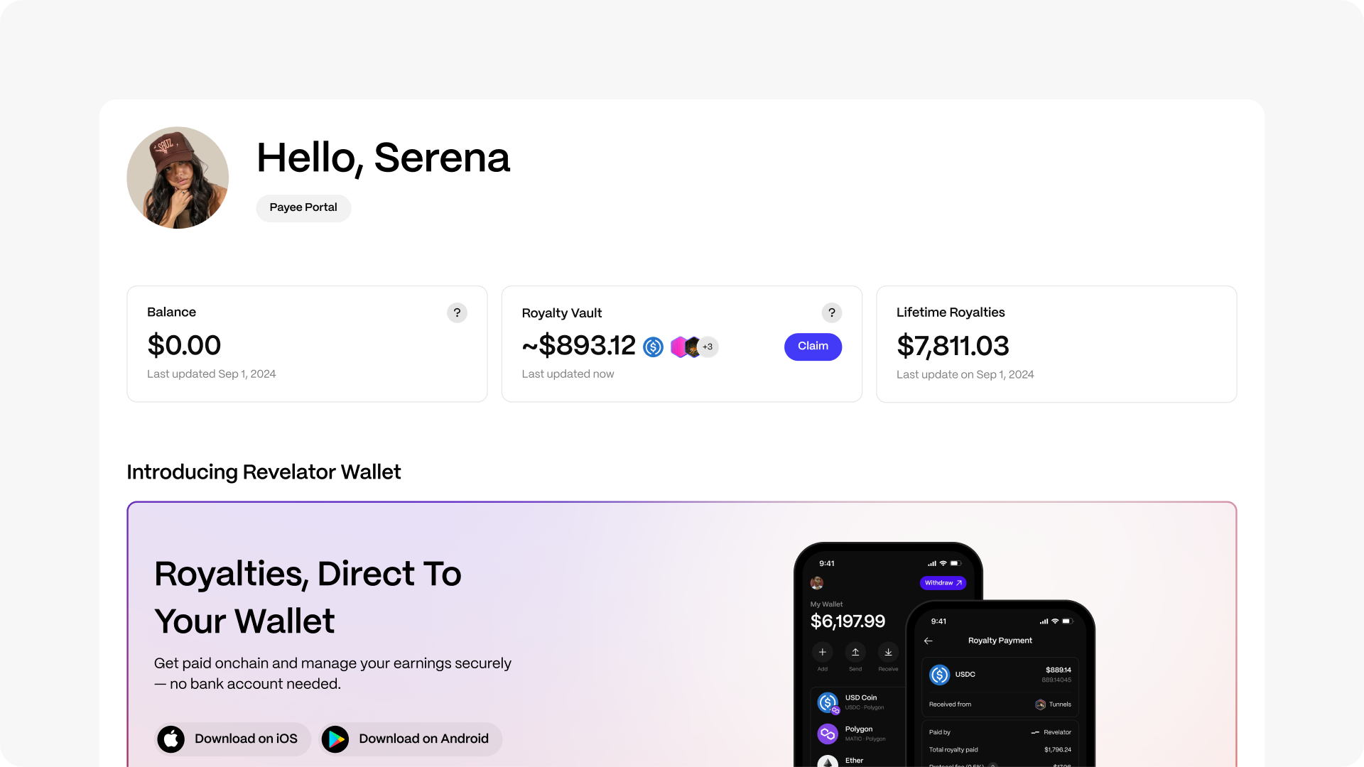 Revelator also adds a second layer of protection with the **Royalty Vault Key** that is only accessible by the Payee.